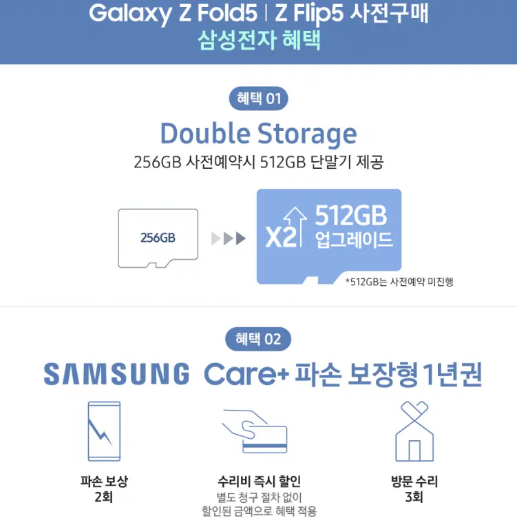 갤럭시 Z 폴드5, Z 플립5 용량 업그레이드 혜택
