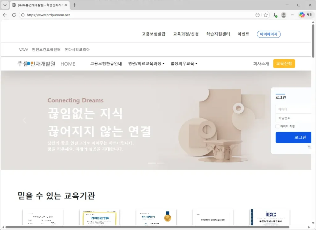 1. 푸름인재개발원 사이트 바로가기 및 특징