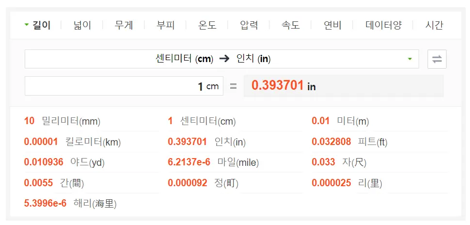 인치 센티미터 변환 방법