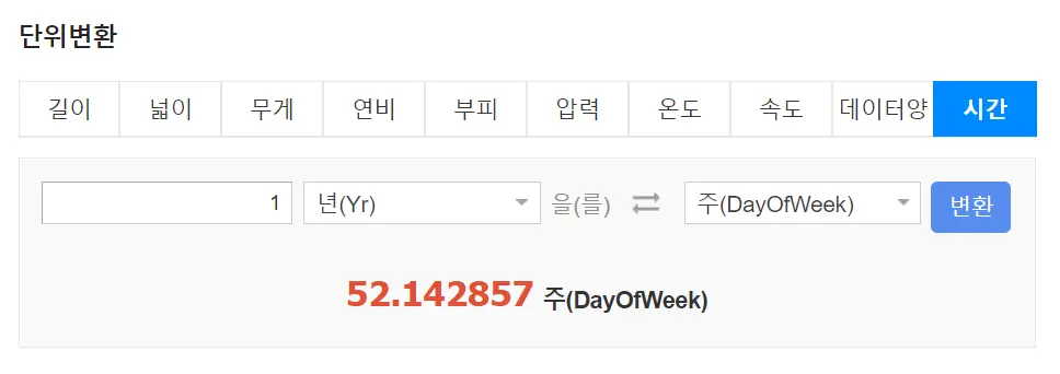 일반적으로 1년은 52주와 1일로 구성됩니다. 하지만 윤년에는 52주와 2일입니다. 윤년은 4년에 한 번씩 오는 특별한 년도로, 2월이 29일로 구성됩니다.