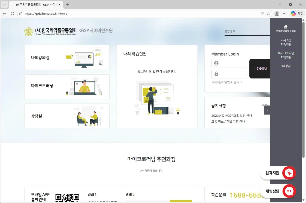 [한국의약품유통협회] KGSP 사이버 연수원 (kpda.hunet.co.kr)